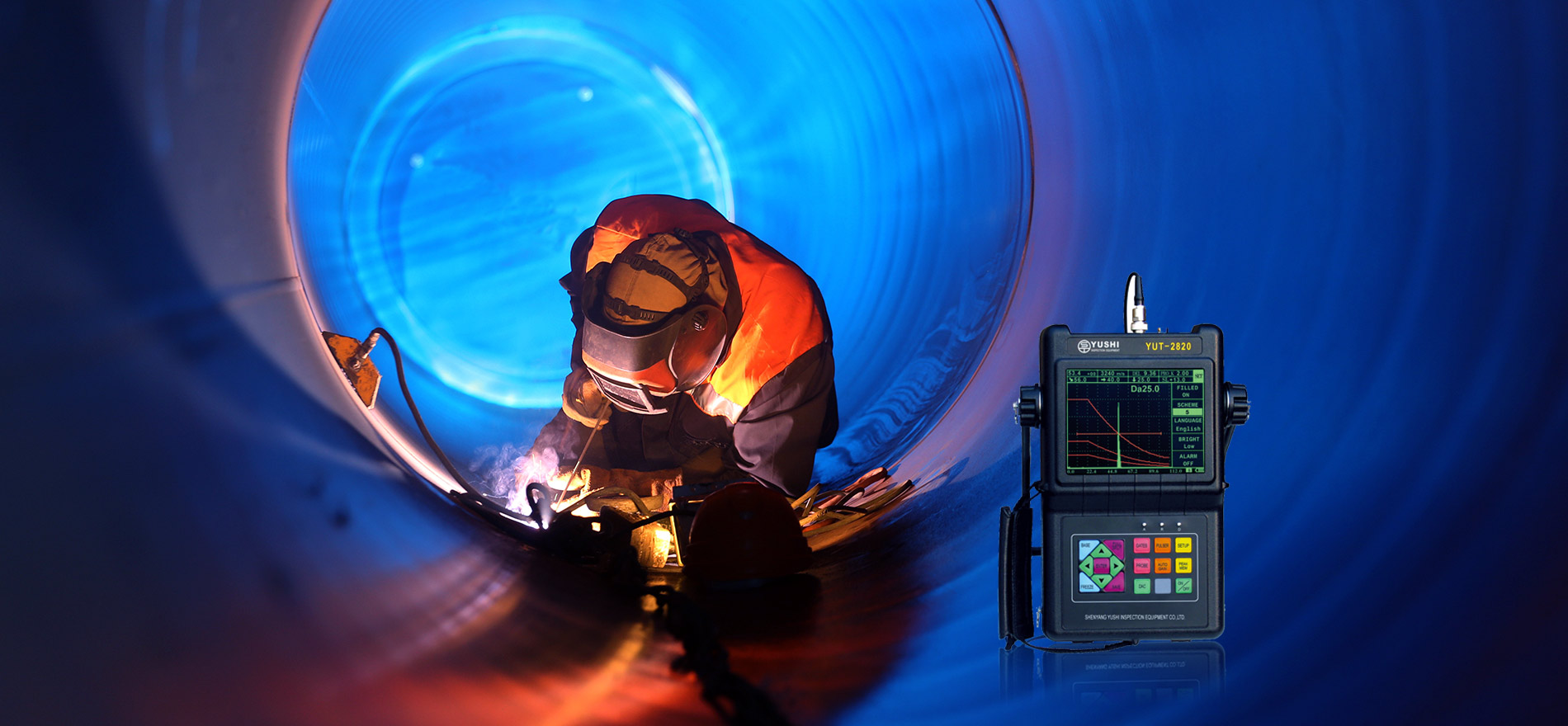 超聲波探傷儀在工程中的應(yīng)用,YUT系列探傷儀具有可變方波技術(shù),全密封設(shè)計(jì),全屏顯示功能,DAC、AVG曲線(xiàn),大容量鋰電池,中英文界面。